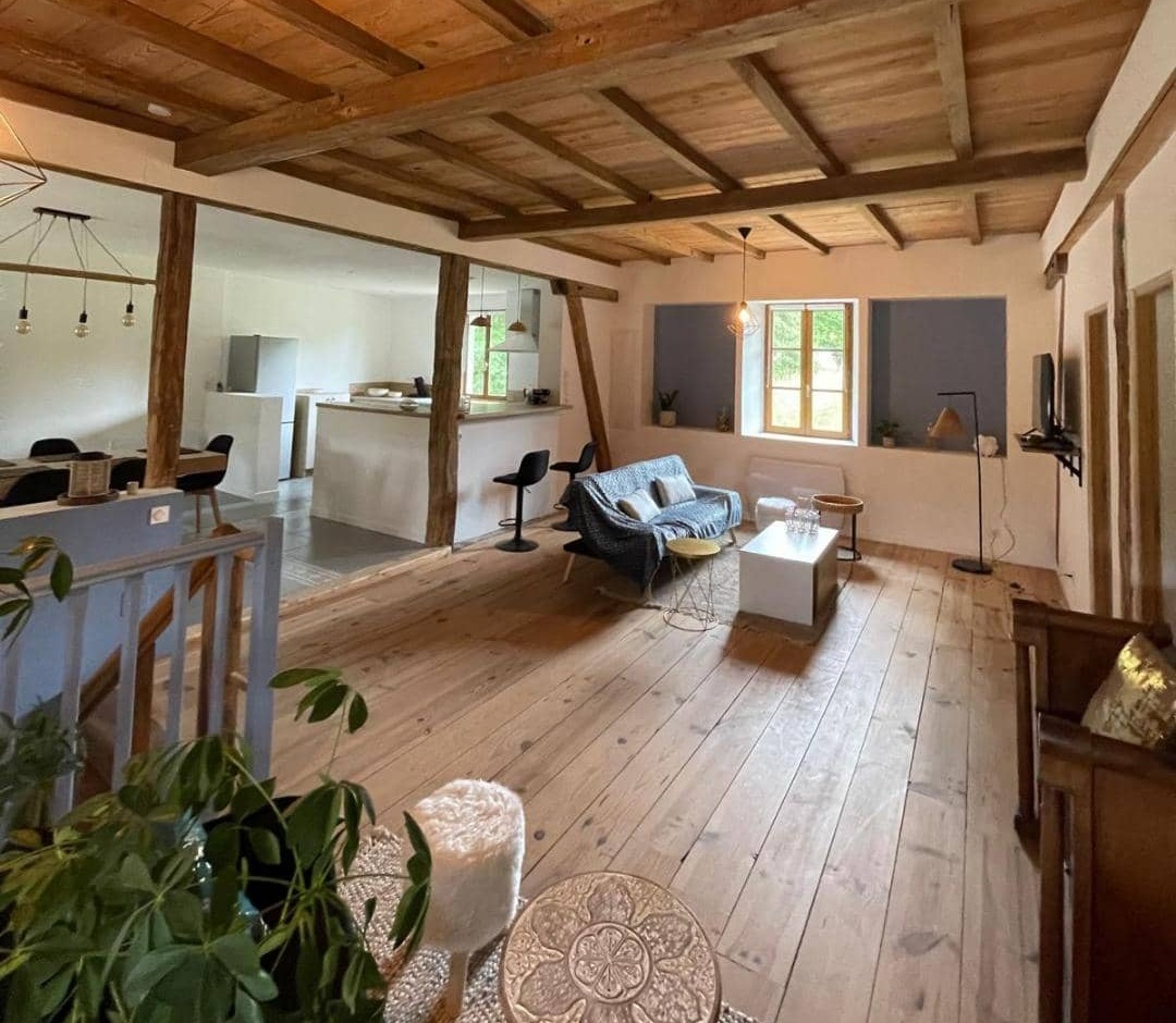 Le gite était à l'origine une grande étable qui a été entièrement rénovée en alliant le charme de l'ancien dans un esprit moderne. Vous y trouverez de magnifiques espaces de vie avec poutres apparentes, des chambres spacieuses, un grand jardin…
