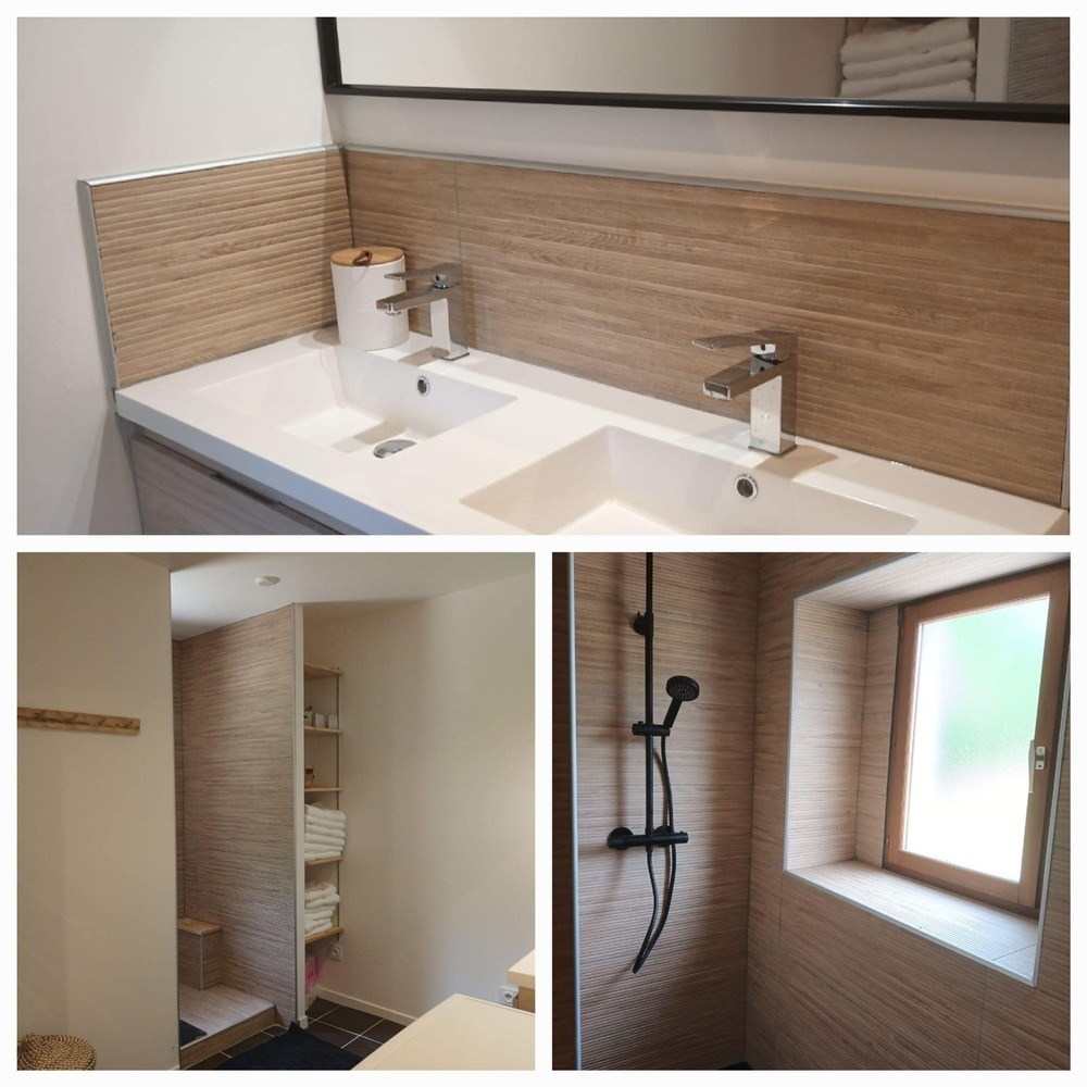 Deux spacieuses salles d'eau à chacun des étages avec espaces douches spacieux ont été créé pour donner un esprit de bien être à votre séjour.